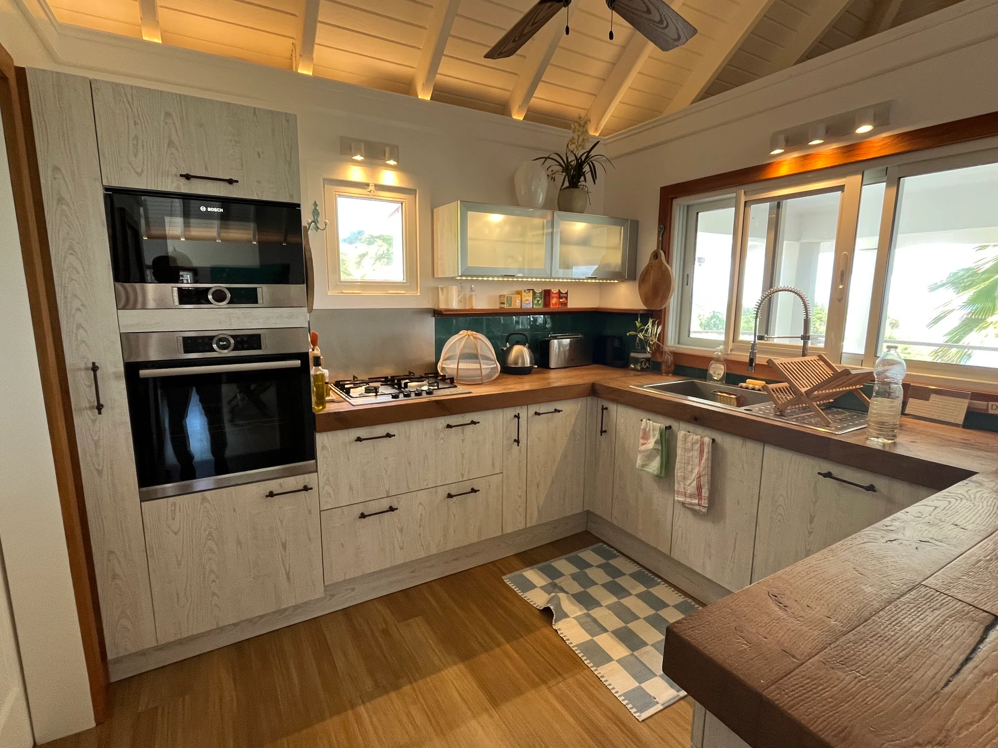 Blending authentic charm with traditional architecture, the property offers a warm and inviting atmosphere reminiscent of classic island homes. The interior features a bright and cosy living space comprising a lounge and an open-plan kitchen, creating a welcoming and sociable environment.