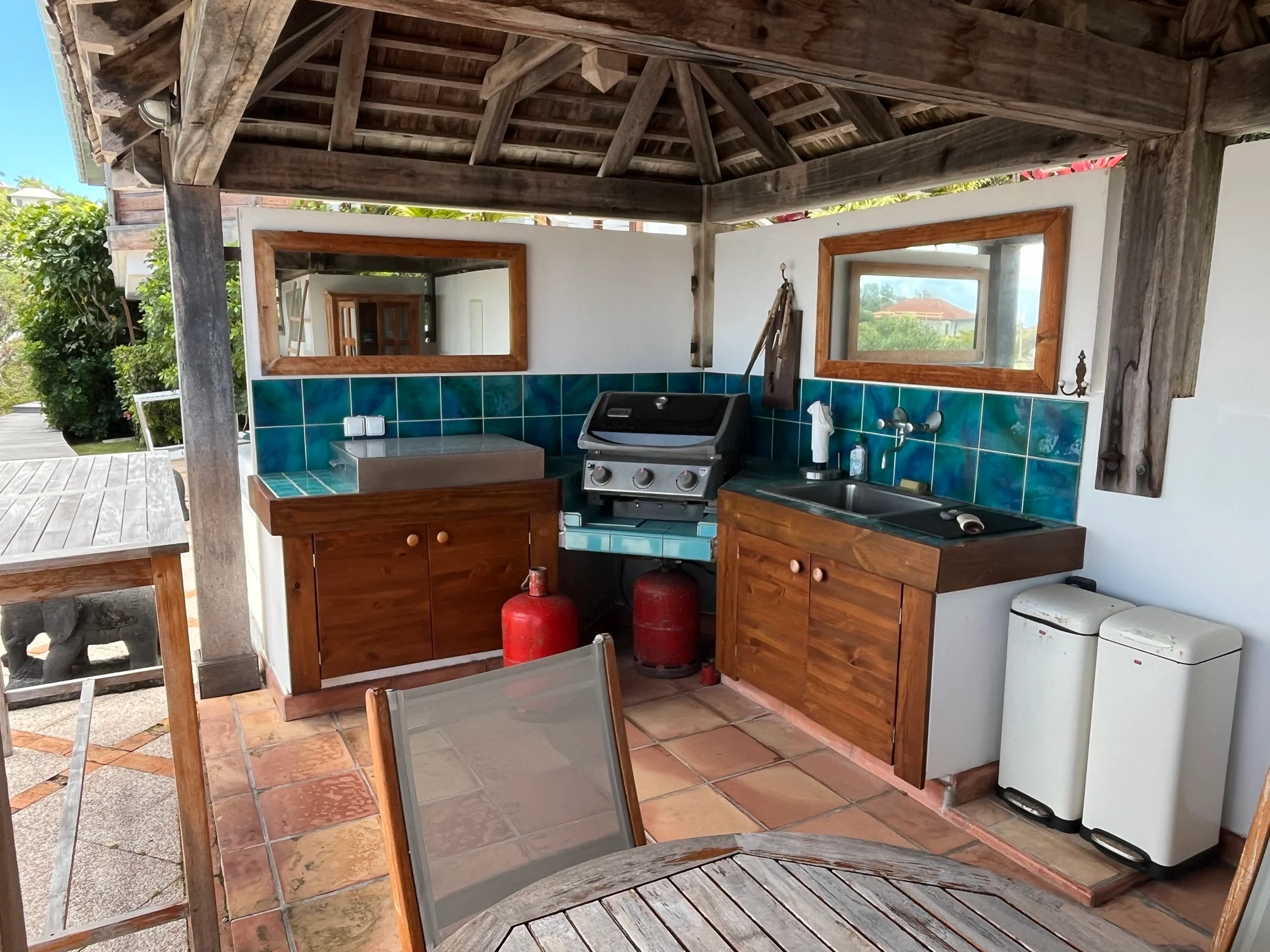 The outdoor areas are thoughtfully designed to take full advantage of the exceptional views, and include a swimming pool, multiple lounge and dining spaces, as well as a fully equipped outdoor kitchen under a huge gazebo.