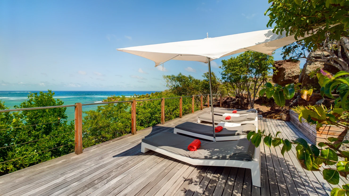 Completing this exceptional offering, the villa Indian Song features a private beachfront area with sun loungers, providing a rare opportunity to enjoy direct access to the sea in complete privacy.