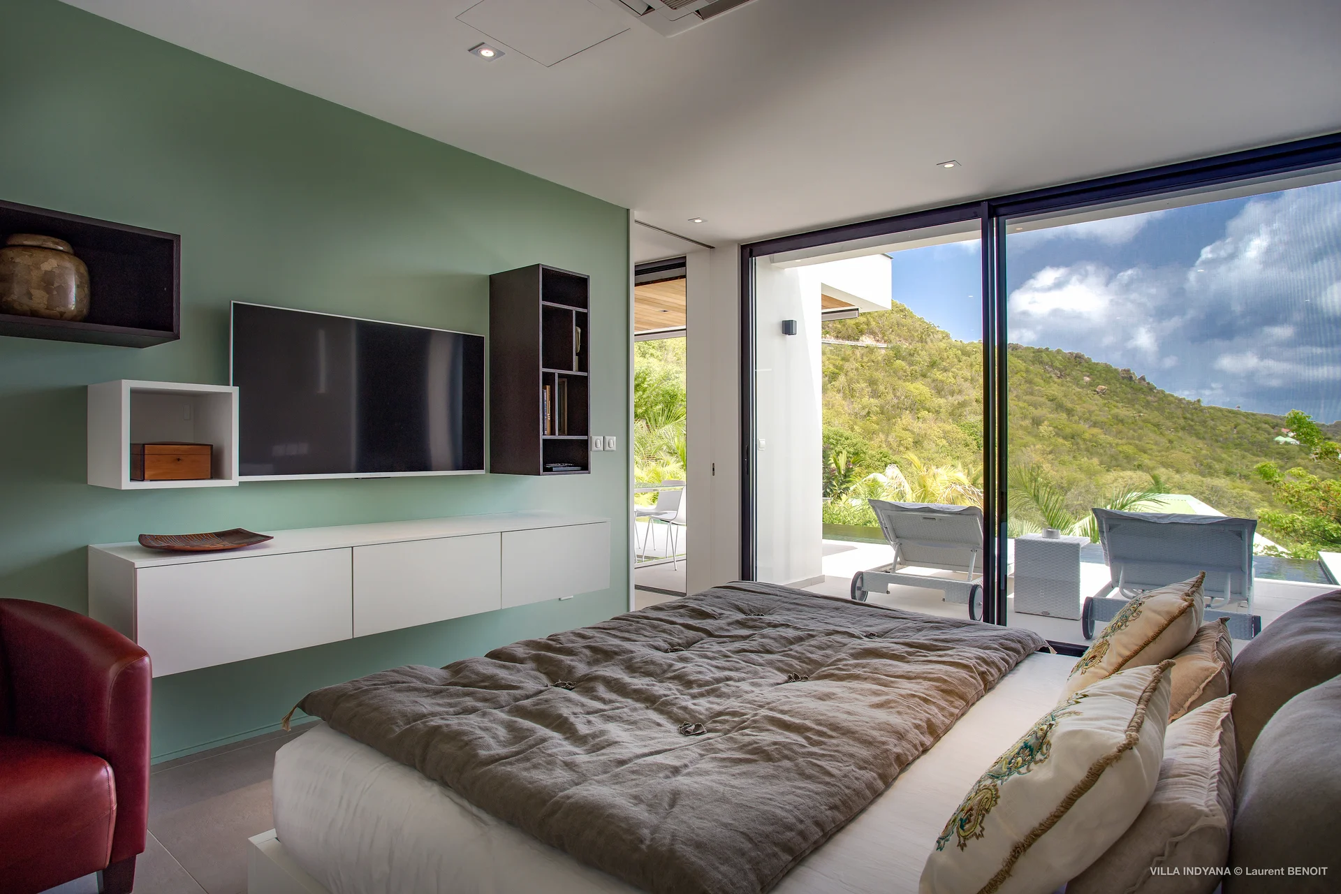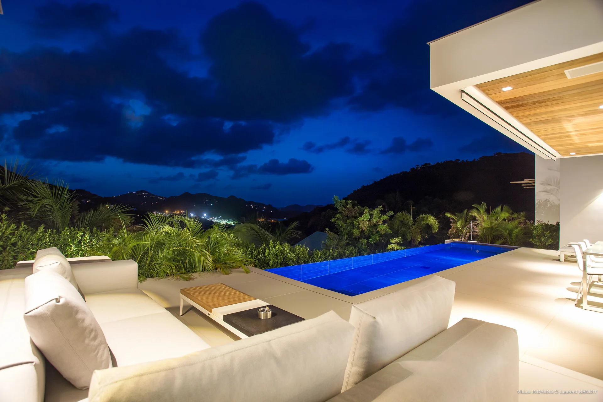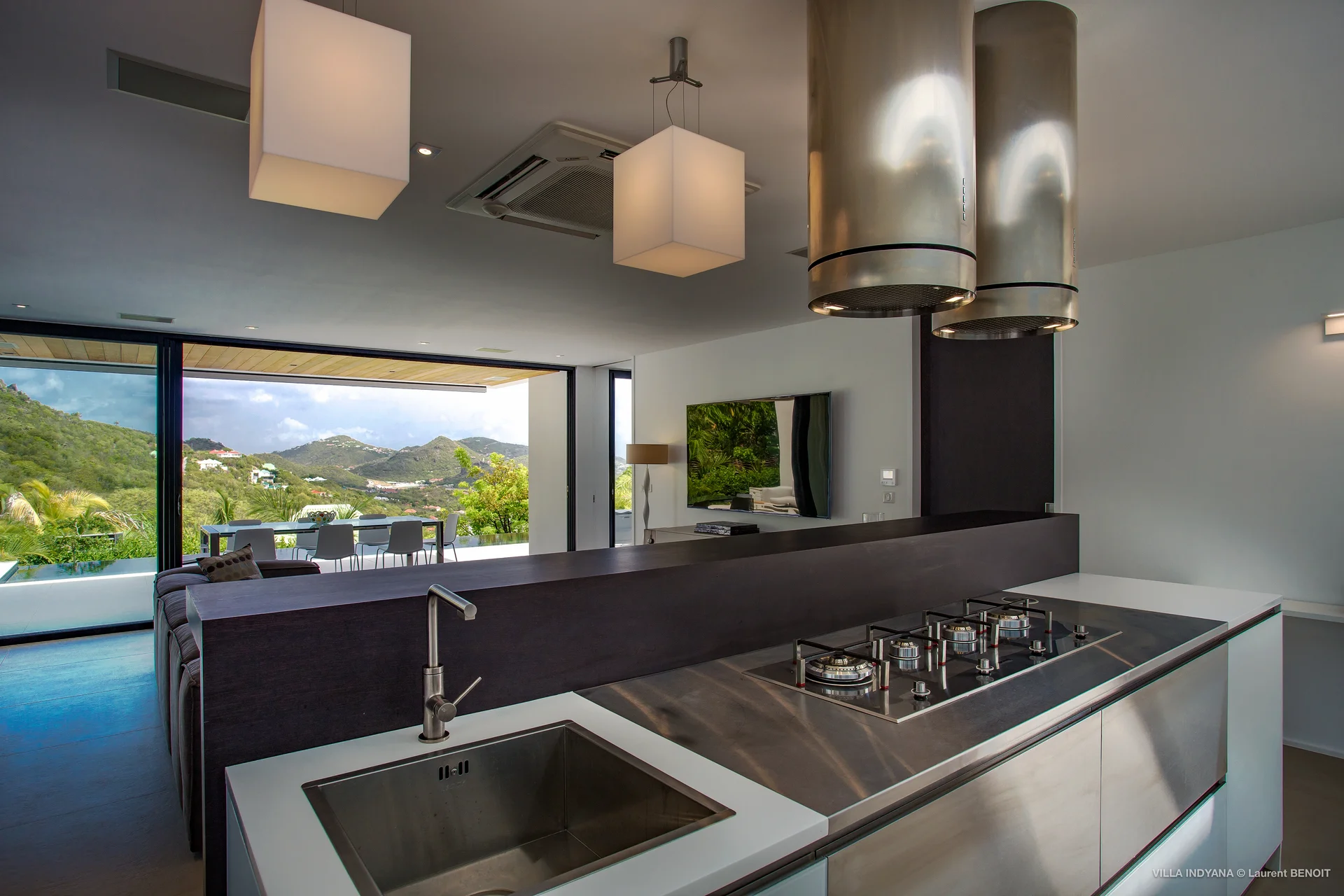 Villa Indyana is a serene retreat perched above the rolling hills of St Barth, offering peaceful views of lush greenery, swaying palms, flamboyant trees, and open blue skies. Designed with clean lines and a palette of soothing slate and charcoal grays with white and subtle pops of color, the villa exudes calm sophistication. It is perfect for small families or couples seeking a relaxed, yet stylish escape, where Caribbean breezes and tranquil surroundings set the tone for everyday indulgence.